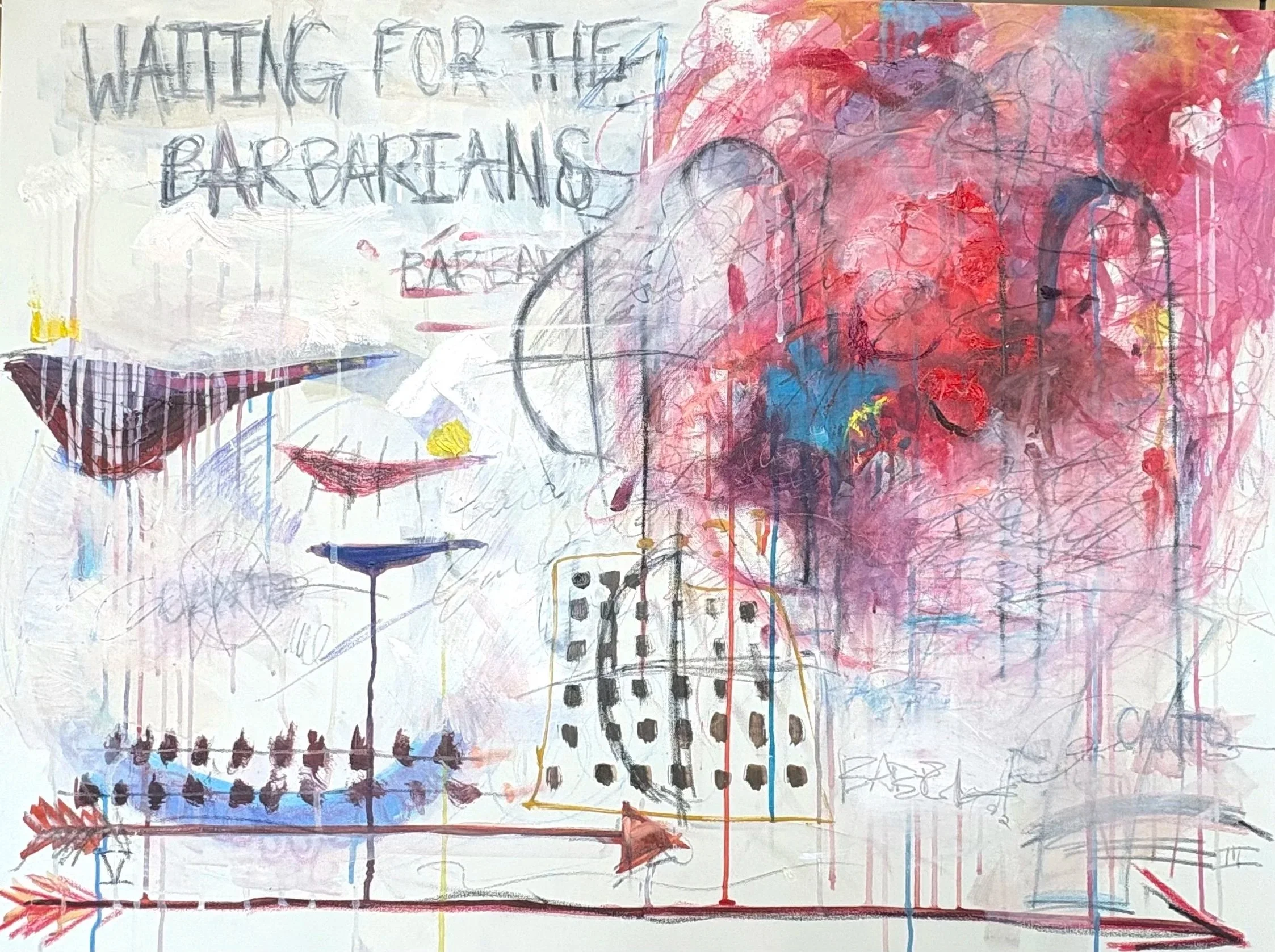 Ella . Jimenez . Com . Ella . Jimenez . Com . Ella . Jimenez . Com . Waiting For the Barbarians, 30” x 40”, Oil on Canvas, 2025.